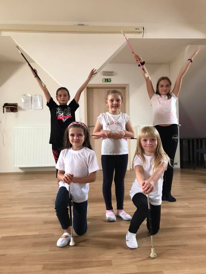 Jedná se o velmi náročný sport, který ve svém vrcholném stavu snoubí půvab pohybu s krásou třpytivých kostýmů, to vše pod taktovkou mažoretkových hůlek. Trénujeme od listopadu 2019, pod vedením trenérky Karolíny Vlachové. Jsme prima parta slečen od 6 do 13 let. Scházíme se 1x týdně.